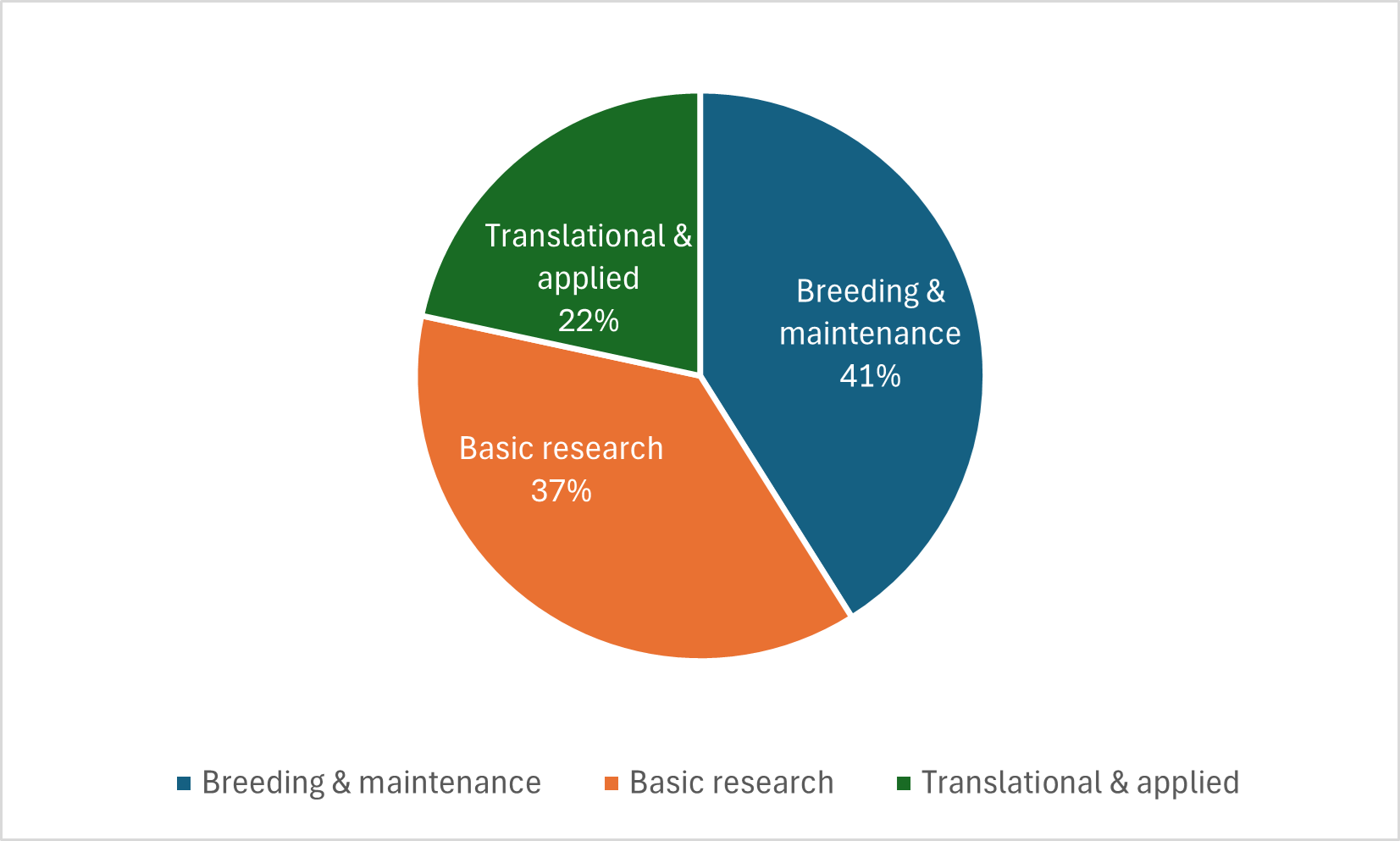 *‘Other species’ includes alpacas, dogs, sheep and pigs. These species each represent less than 1% of animals used and are grouped together in the chart for clarity. Full details are provided in the table above.