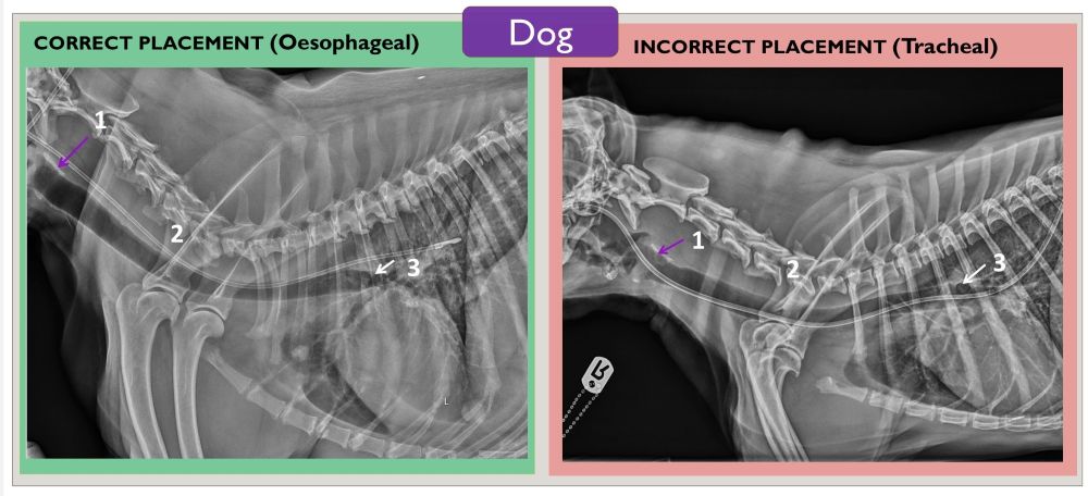 Tube feeding is widely used in both human and veterinary medicine to support patients with illness and reduce mortality, with nasoesophageal (a tube passed through the nose into the oesophagus) and nasogastric (a tube passed through the nose into the stomach) tubes commonly used in dogs and cats. However, until now, there has been no published guidance on precise radiographic criteria for determining correct tube placement, making interpretation uncertain and potentially leading to complications, including aspiration pneumonia (lung infection) and pneumothorax (collapsed lung). By addressing this gap, the study aimed to create a practical approach to help both first opinion and referral veterinarians assess feeding tube placement more accurately and with greater confidence.