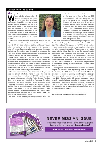 At the RVC we are incredibly appreciative of cases that are The centre pages have an article outlining developments in the