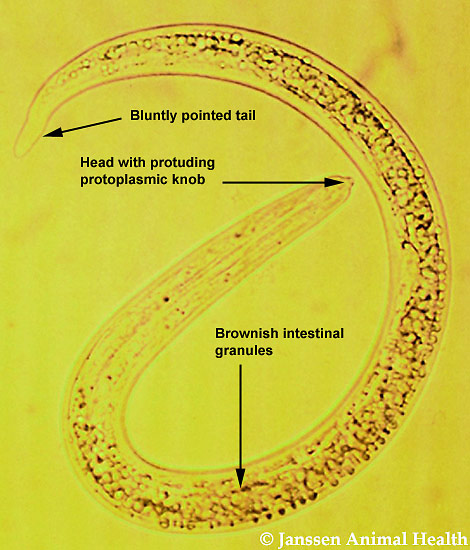 The features shown are used to confirm diagnosis and to distinguish from free-living and other nematodes that might be present.