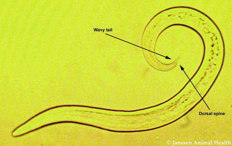 The features shown are used to confirm diagnosis and to distinguish from free-living and other nematodes that might be present.