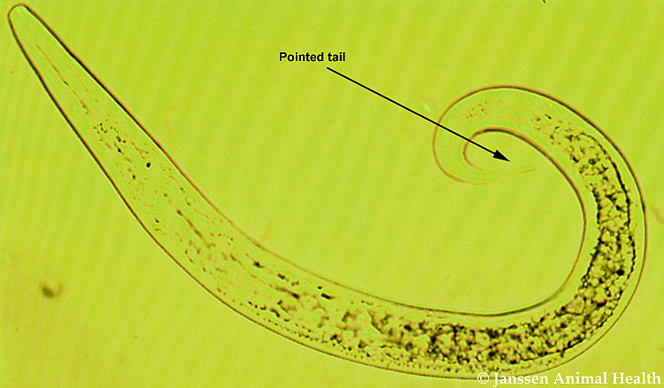 The features shown are used to confirm diagnosis and to distinguish from free-living and other nematodes that might be present.