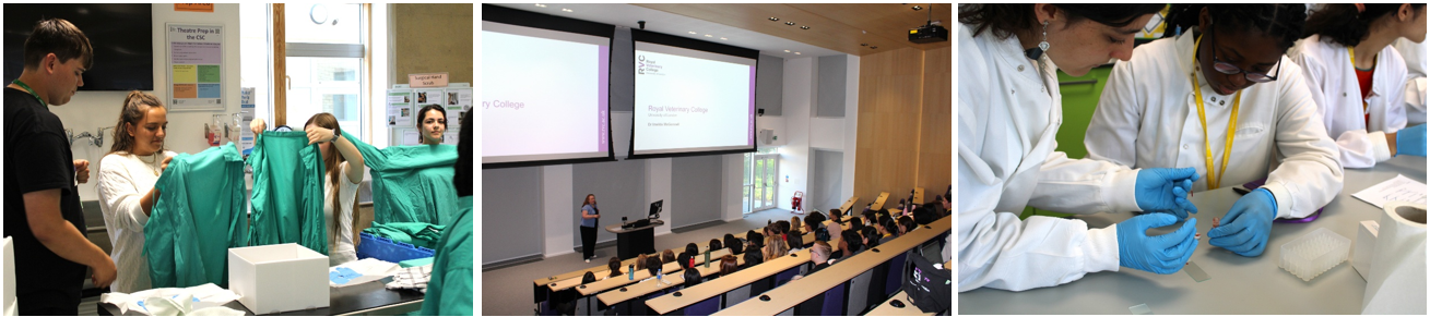 Our University of London Taster Courses offer Year 12 students an exclusive opportunity to experience what studying with us at the Royal Veterinary College (RVC) is like. During the day, students take part in a variety of university-style teaching, including course-specific lectures, small group sessions, and practical, hands-on activities. Students also have the chance to tour our campus, hear directly from our Student Ambassadors about daily life, and receive tailored advice on the application process. Together, these experiences provide an immersive introduction designed to help students decide whether an RVC degree is the right choice for them. We currently offer two Taster Courses: